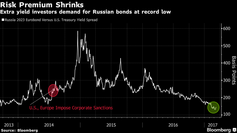 Стоит также обратить внимание, что сейчас уровень риска по инвестициям в российские гособлигации ниже, чем в момент введения санкций в 2014 году.