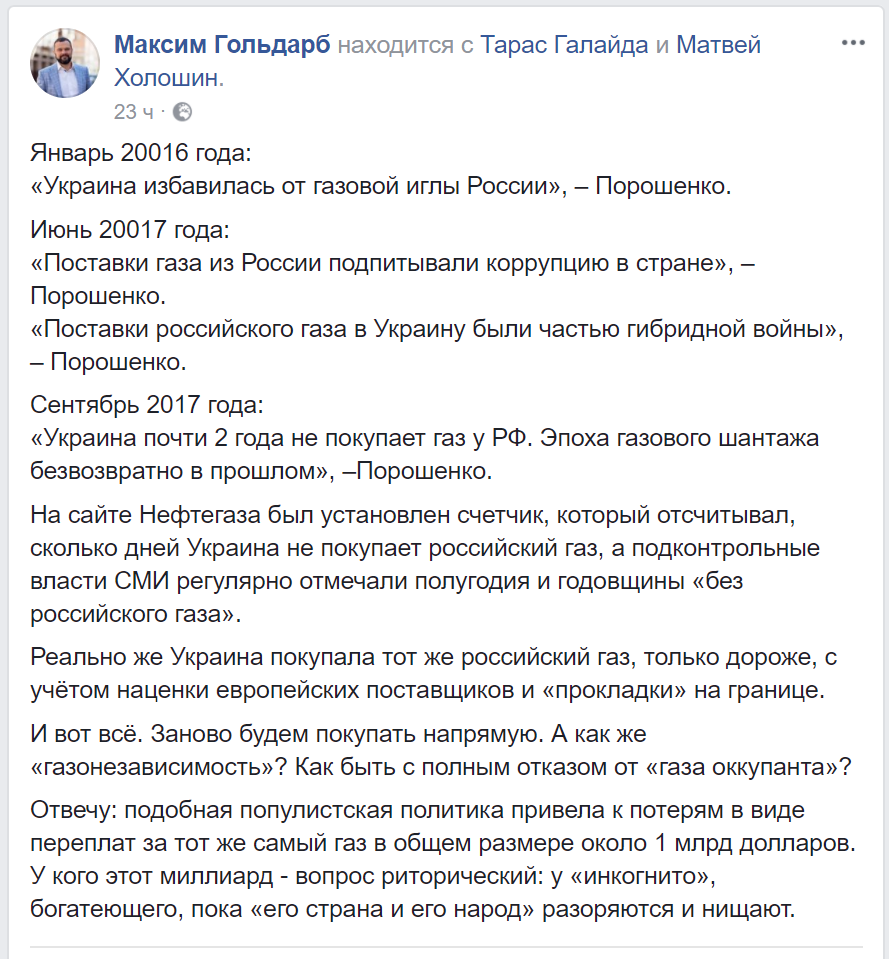 В результате, только за 2017 г. Киев переплатил более $400 млн. Поэтому оценка потерь в $1 млрд очень близка к реальности.