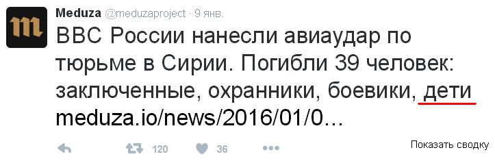 With this background it’s amusing to see the second (!) news about Syrian children killed by Russian air forces which shows how «Meduza» works and what is «fact journalism» for «Meduza» editorial staff.