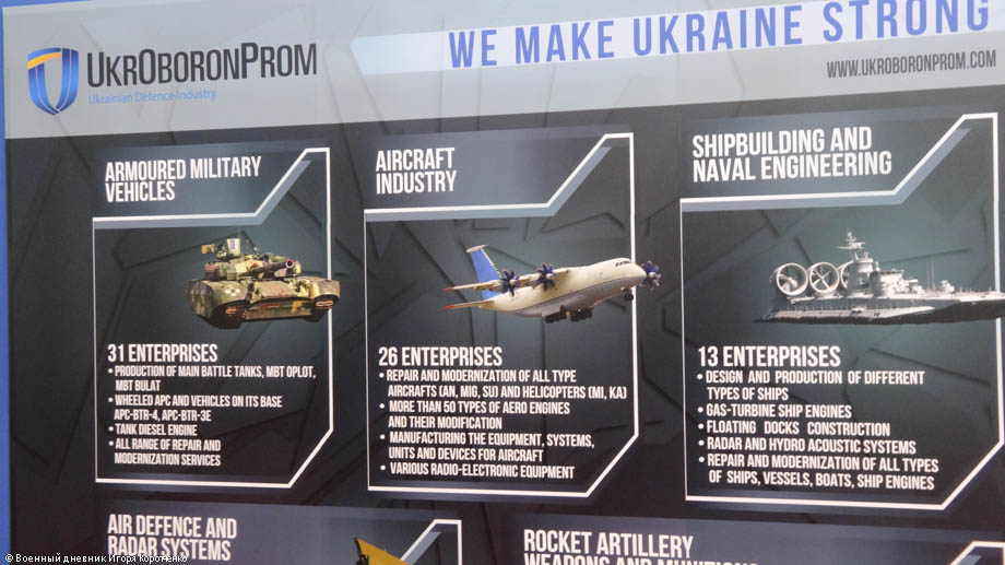 Немногочисленные украинские представители тупо слонялись вокруг стенда, явно не находя себе место, или же, собравшись в кружок, шепотом обсуждали беды Незалежной. Зато переговорную комнату (она также пустовала) украшал большой портрет президента Петра Порошенко, ныне успешно выступающего в качестве могильщика украинского ОПК.