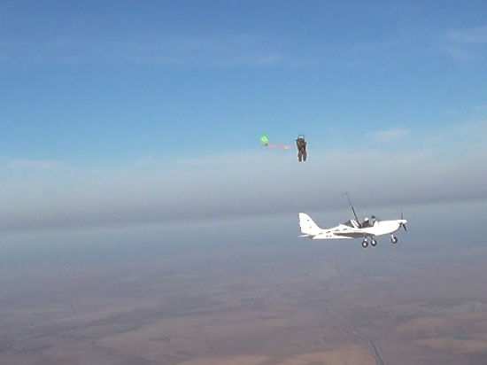 Выглядит это так: перед вылетом все члены экипажа моноплана надевают специальные парашюты, связанные с системой катапультирования, после чего как положено пристегиваются и приступают к взлету.