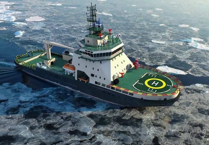 Новый ледокол стал первым в серии судов, предназначенных для вспомогательного флота ВМФ России, проект разработан ОАО «КБ «Вымпел».
