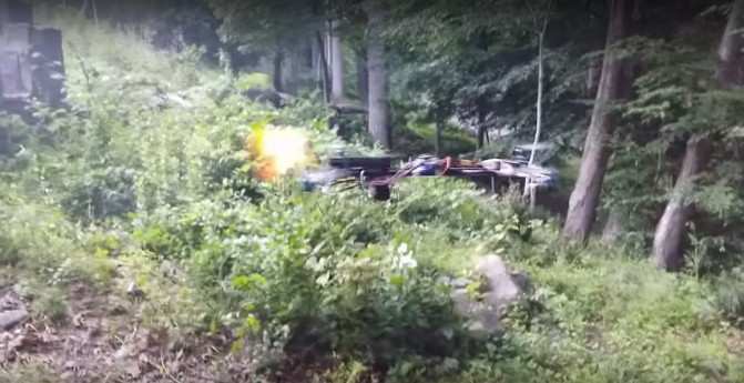 В этом 15-секундном ролике к самодельному квадрокоптеру прикреплен полуавтоматический пистолет, делающий четыре выстрела. После каждого из выстрелов дрон отбрасывает назад, однако он не теряет стабильность и продолжает держаться в воздухе.