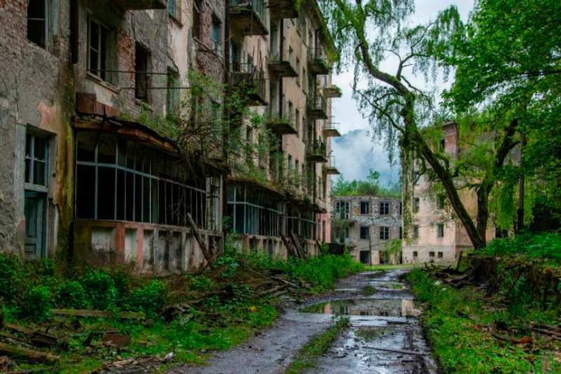 Заброшенный абхазский город Ткварчели (Ткуарчал), который был основан в 1942 году, как индустриальный центр Абхазии, но практически полностью опустел из-за войны 1992–1993 года и последующих экономических санкций.