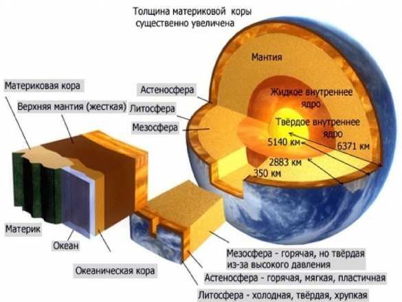 Недра Земли состоят из нескольких слоев — твердой земной коры, полужидкой мантии и расплавленного металлического ядра. Кора разделена на несколько огромных фрагментов — тектонических плит, которые медленно «плавают» по мантии и сталкиваются друг с другом.
