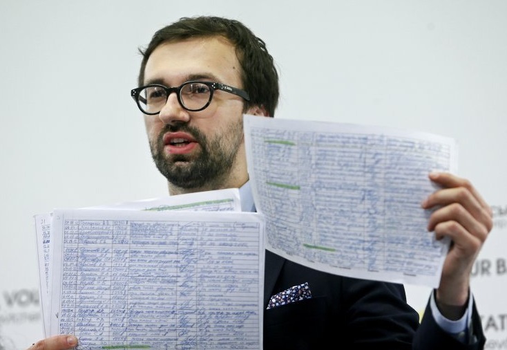 Сергей Лещенко демонстрирует страницы «амбарной книги» Партии регионов