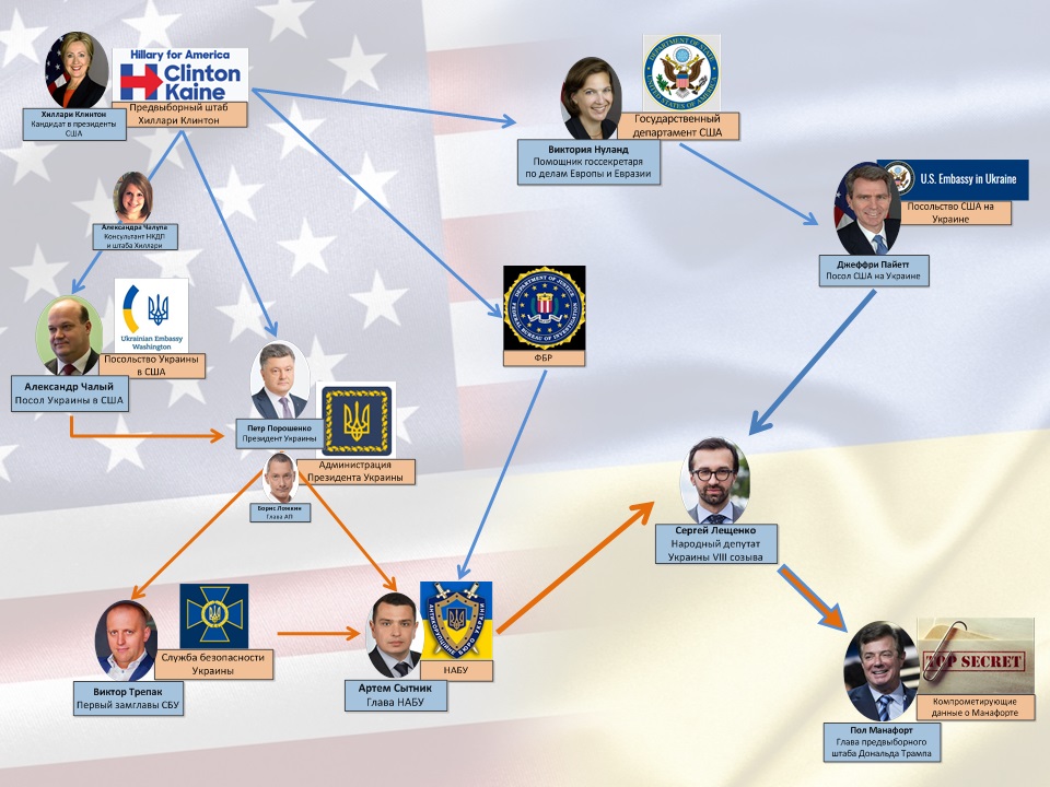 Фактически эта история, которая теперь получила название «Украинагейт», представляет собой преступный сговор представителей предвыборного штаба Хиллари Клинтон и руководства Украины в лице Порошенко, направленный на недопущение победы Дональда Трампа.