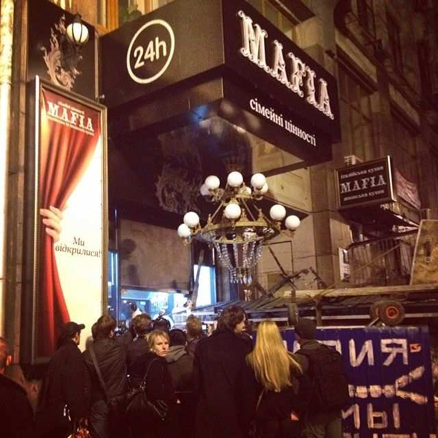 К «Мафии» подъехали бойцы «Самообороны Майдана». Сотник 11 сотни Анатолий Медведь сообщил, что конфликт с Правым сектором произошел из-за вопроса разбора палаток и баррикад.