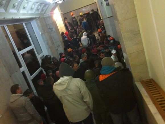 Активисты в основном, расположились на двух этажах. Кабинеты опечатаны. Им начали подвозить еду. Они обещают поддерживать порядок.