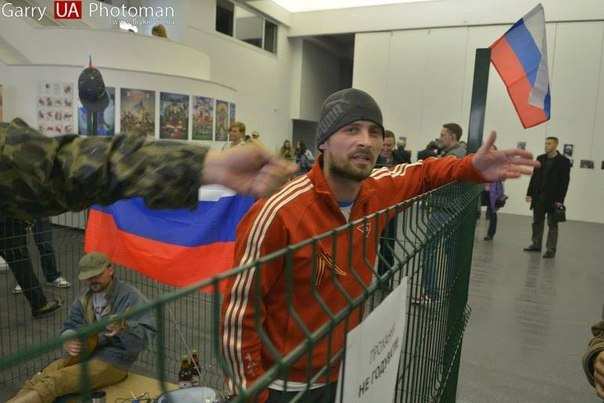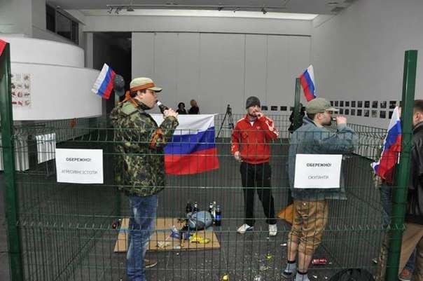 На выставке сделали интерактивную инсталляцию «Осторожно русские!». В которой отразили «славяно-краматорских» сепаратистов. В рамках проекта также была презентация документального фильма о художниках и искусство на баррикадах «Майдан. Искусство сопротивления».