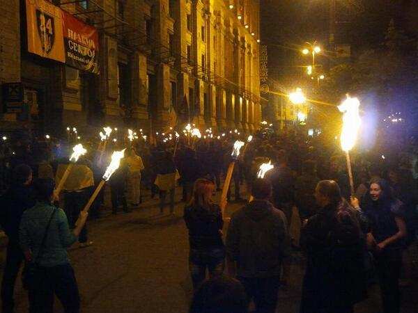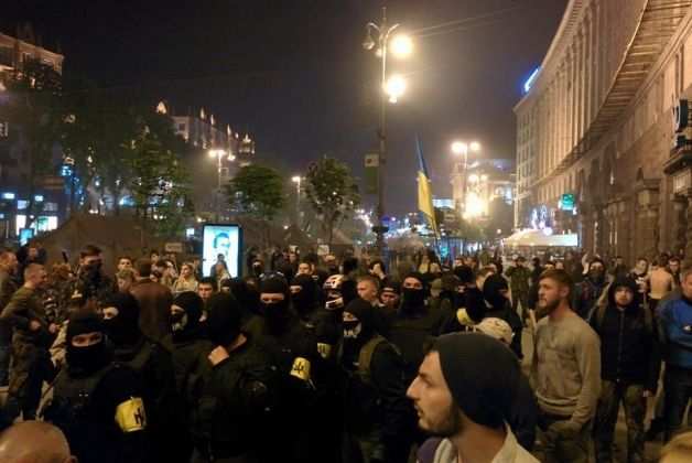 Толпа с факелами пыталась прорваться на Майдан и забрать себе реликвии, связанные с памятью «Небесной сотни». Их не пустили, на баррикадах началась жестокая драка между штурмовиками «Национал-социалистической Ассамблеи» и сотнями «Самообороны Майдана».