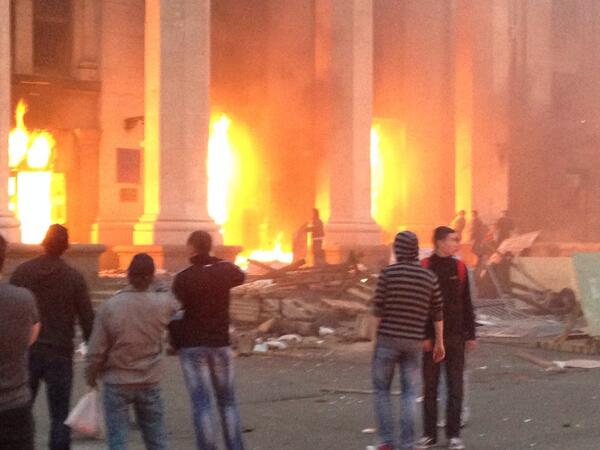 «После боев на ул. Греческой и Соборной площади фашисты начали наступление на Куликово поле. Их было несколько тысяч. Наши силы были не равными, к тому же, у нас не было вообще никакого оружия! Мы были вынуждены отступить и решили забаррикадироваться в здании Дома Профсоюзов, находящемся рядом. Что потом произошло — у меня до сих пор не укладывается в голове», — голос собеседника дрожит.