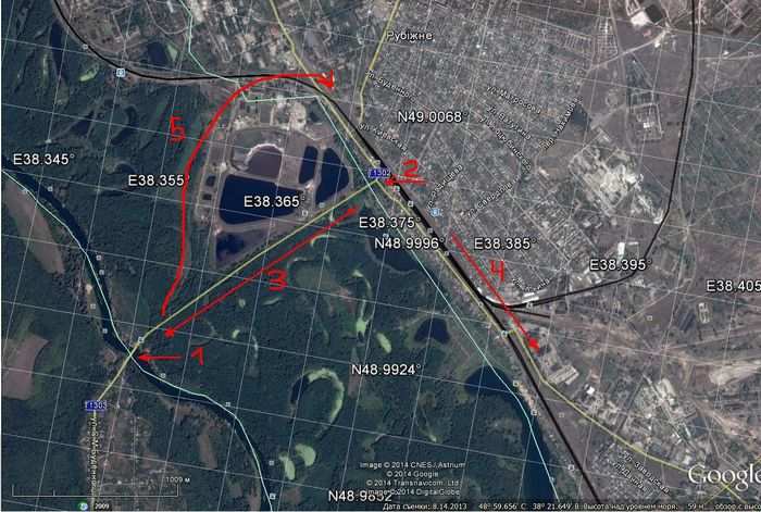 25. Возможно, хунта на БМП прошла по маршруту 5 и вышла на 3-х БМП к ЖД, где все еще стояла их БМП, либо это была деблокирующая группа со стороны Краснянки.