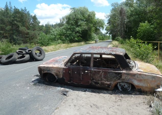 В Макарово мы въезжали, внимательно вглядываясь вперед – не нарваться бы на нацгвардию. Вот уже впереди просматривается северный блокпост, над которым еще тут позавчера (я видел) развивался российский флаг. Позавчера этот пост обстреливали из танков, но все снаряды попали в дома и на огороды жителей. А сегодня здесь нашего флага нет. Сообразительный таксист резко свернул с дороги и предложил нам выйти. А сам он съездит туда, разведает.