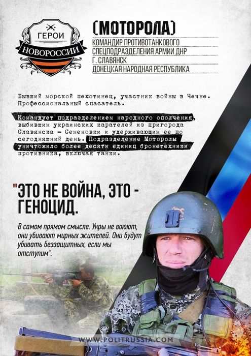 Вот и командир ополченцев с позывным "Моторола", после того, как сожжет танк-другой карателей, переходит на информационный фронт, развенчивая ложь хунты о событиях на Донбассе.