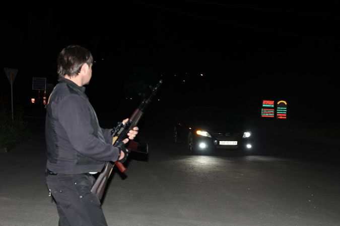Встаем на темном перекрестке в восточной части города. Один боец с автоматом, еще двое - со светящимся гаишным жезлом. Жезл лишний – водители, завидев нас, сами останавливаются и послушно ждут своей очереди. Одесса проверяет документы, интересуется, откуда и куда.