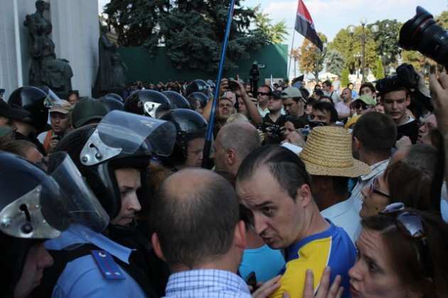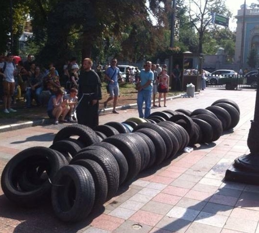 Когда митингующие по доброй традиции начали подтаскивать шины, имела место небольшая потасовка с милицией. Шины оставили. Двух задержанных, один из которых кидался зеленкой, другой — взрывпакетами, отпустили. Ждем четверга, 14 августа.