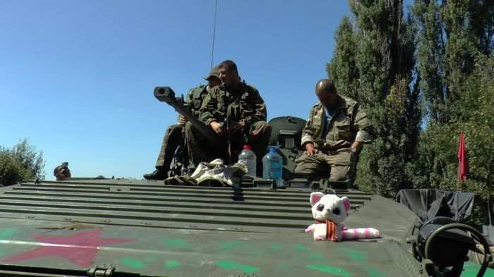 Предлагаем вашему вниманию подборку свежих фотографий с места артиллерийской атаки: побитая Градом ополчения техника ВСУ, танки и артиллерия ополчения и забавный зверек «сепаратяга» на фоне сожженной техники.