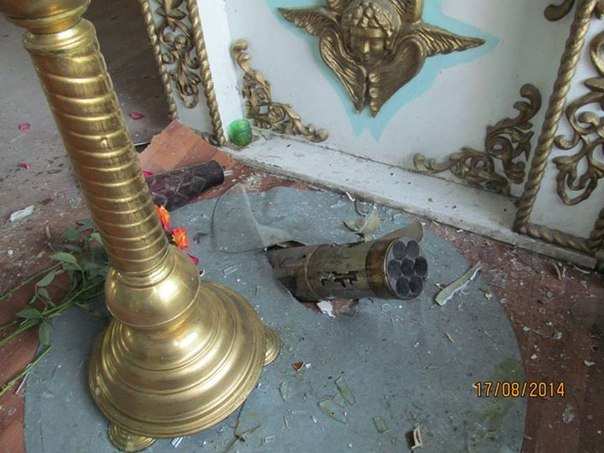 В ночь на 17 августа снаряд попал в единственный в поселке Свято-Петро-Павловский храм. К счастью, 1,5 метровый боеприпас не сработал, а только разбил окно, опрокинул вазу с цветами и вошел в пол у подножия иконы Господа Вседержителя. Впрочем, службу на следующий день здесь решили не проводить.