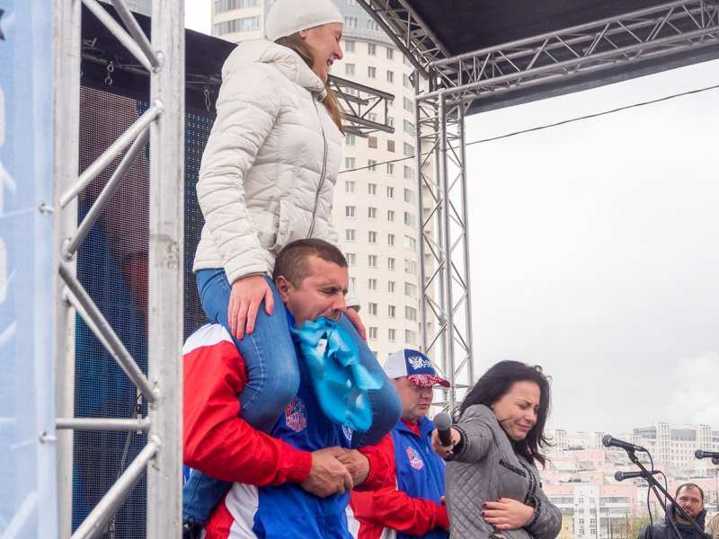 Это было пиршество спорта и торжество Православия. Русские богатыри гнули стальные прутья и сковородки, как ивовые прутья и пластиковую одноразовую посуду. Рвали резиновые грелки, как воздушные шарики. А когда они сначала протянули много метров 3 Хаммера, весом 12 с лишним тонн, а потом 4 Хаммера, весом 16,5 тонн, зрители взорвались аплодисментами и дружным криком «Молодцы!!!».
