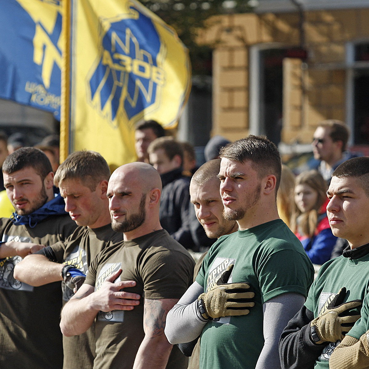 В Киеве на Софийской площади провожают в зону боевых действий боевиков батальона «Азов».