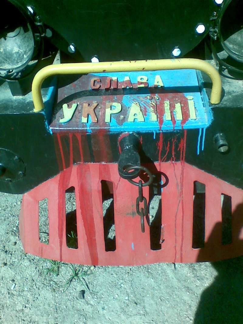Активисты киевского антифашистского Сопротивления продолжают борьбу. В разный районах города на украинскую символику и предвыборную агитацию наносится краска, напоминающая кровь. Это напоминание украинцам, что ради их символов под обстрелами на Донбассе погибают мирные люди и мобилизованные мужчины и парни, которые не хотели умирать…