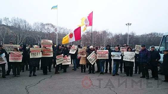 После стихийных пикетов у городских электросетей сотня горожан пришла к зданию обладминистрации требовать у губернатора защитить в Киеве интересы одесситов: добиться ограничения беспредела отключений и снижения тарифов за коммуналку.