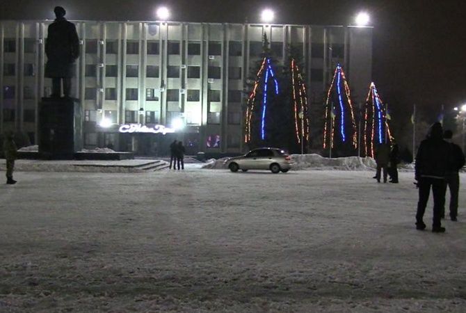 01:20 — на площадь прибыл автомобиль „Ланос“, который остановился около памятника Ленину, а потом переместился к зданию горсовета после того как его начали фиксировать на свои телефоны митингующие горожане. В „Ланосе“ находилось четыре человека.