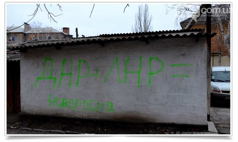В Славянске тоже как умеют борются: «(7 февраля) утром жители нескольких домов по улице Льва Толстого увидели, что стены их домов изуродованы надписями сепаратистского толка.