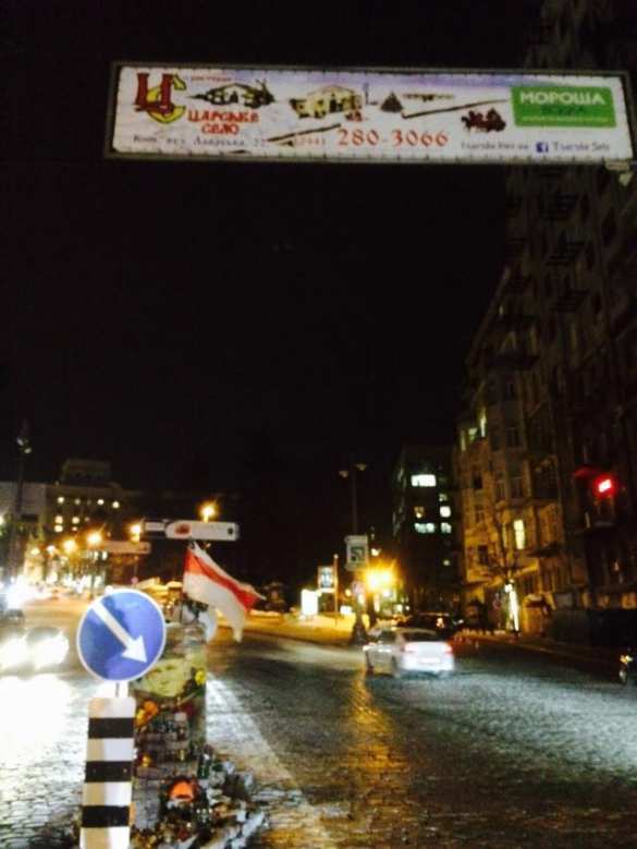 После Майдана подъехал к Динамо, в наши «джюнгли». И там тоже реально — о***ел. Другого слова не подберу. Над островком с цветами и лампадками, с белорусским флагом, висит реклама. Со стороны Грушевского на перетяжке логотип дримтауна и бодрая надпись «У нас как в сказке»!!!!!! Над лампадками…