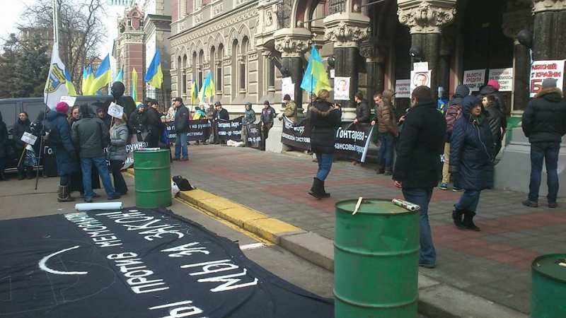 В Киеве под стенами НБУ началась бессрочная акция в поддержку требований Финансового майдана — решение вопроса валютных заёмщиков.