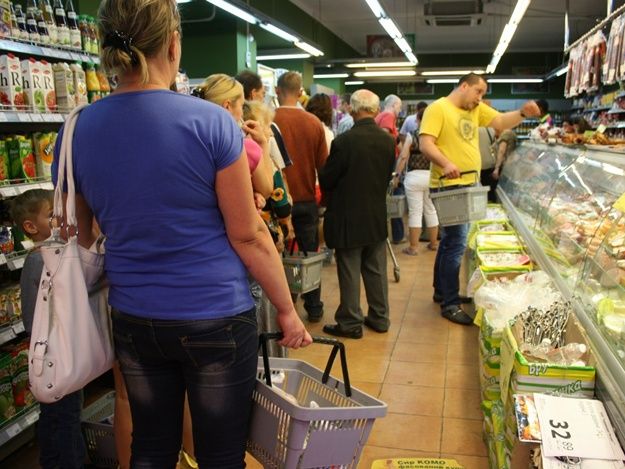 Из-за падения гривны люди cметают муку, сахар, крупы и подсолнечное масло.
