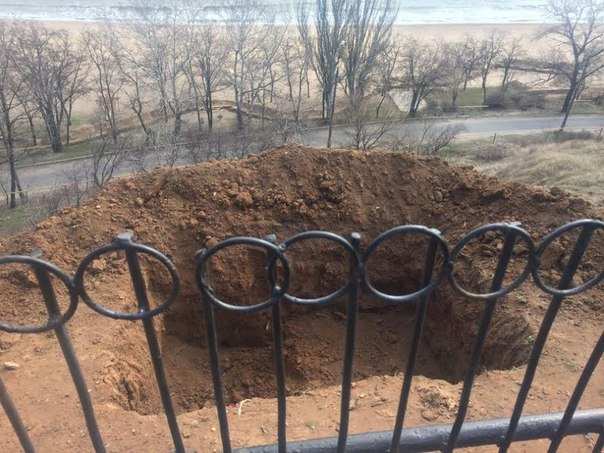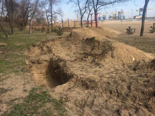 В минувшую субботу на пляж поселка заехала строительная и военная техника и были начаты работы по рытью окопов и оборудованию укреплений.
