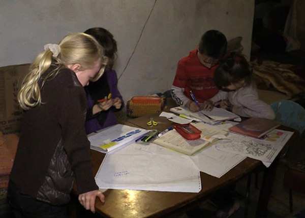 В городе Первомайске в одном из бункеров 120 человек прячутся с лета прошлого года. Со взрослыми в убежище также живут 12 детей, которые ведут весьма серьезные разговоры и имеют далеко не детский взгляд на жизнь. Среди них пять братьев и сестер семьи Титарчук. Дети следят и ухаживают друг за другом.