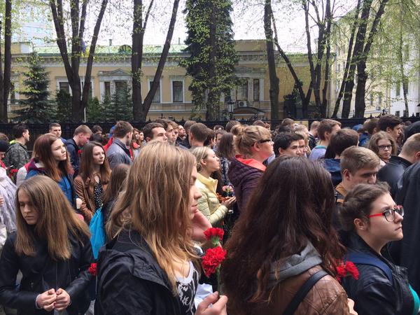 У здания посольства были возложены цветы и зажжены поминальные свечи. Акция, в которой приняли участие порядка тысячи человек, закончилась минутой молчания.