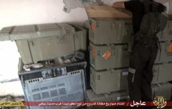 Судя по распространенным на исламистских ресурсах видеокадрам, боевики Исламского Государства (Халифата)* в ходе боев в районе иракского города Байджи (в 200 км севернее Багдада) захватили на одном из складов иракской армии современные противотанковые ракетные комплексы 9К129 «Корнет-Э» российского производства.