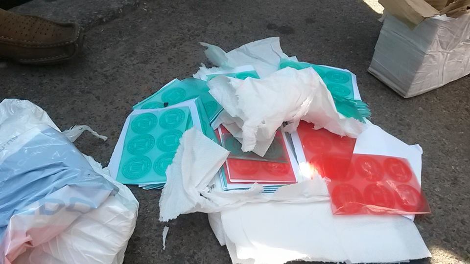 В Чернигове активисты и депутаты задержали микроавтобус СВ 3226 АА, в котором находились фальшивые силиконовые печати, дублирующие печати ДВК и ОВК по 205-му округу всех участков.