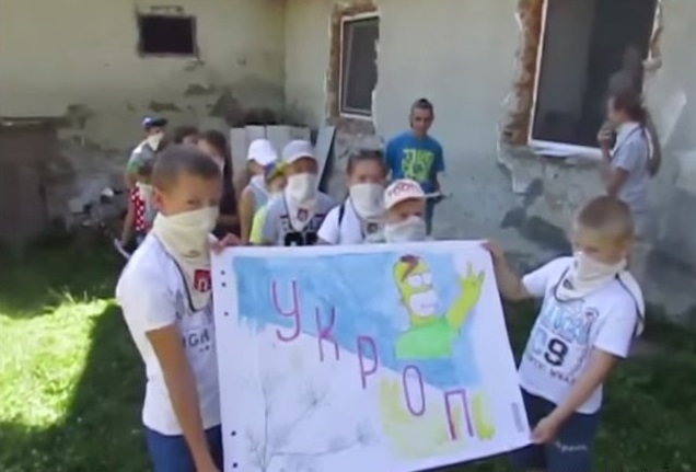 В начале дети хором декламируют «Мы укропы — патриоты!», а затем начинают петь «патриотическую» песню «Мы хлопцы с Бандерштадта».