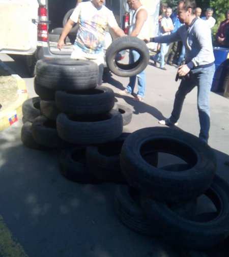 Один из боевиков Олег Радик поделился в своем Facebook фотографиями покрышек, которые его соратники принесли к офису.