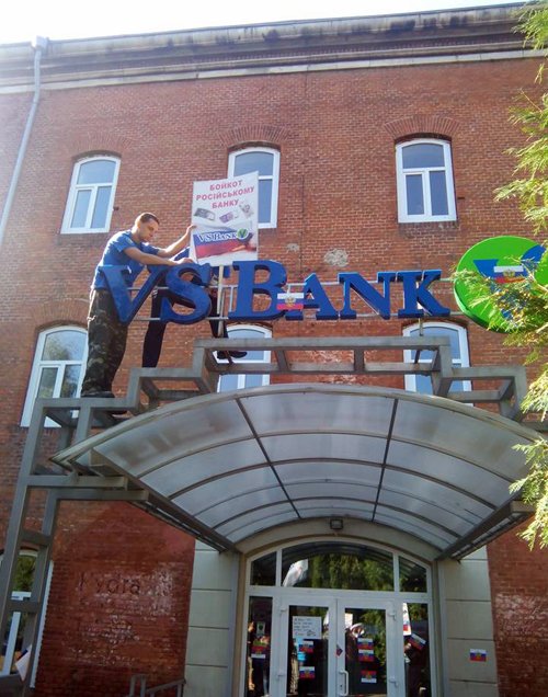 Сегодня, 20 августа, боевики нескольких львовских бандеровских организаций собрались возле здания российского Сбербанка и VS-Банка. В акции принимают участие радикалы из группировок «Развитие громады», «Самооборона Львовского Евромайдана», «Рабов не пускают в Рай», которые на этой неделе уже собирались на этом месте. Также к незаконной акции присоединились активисты «Кредитного майдана» и движение «Економический бойкот».