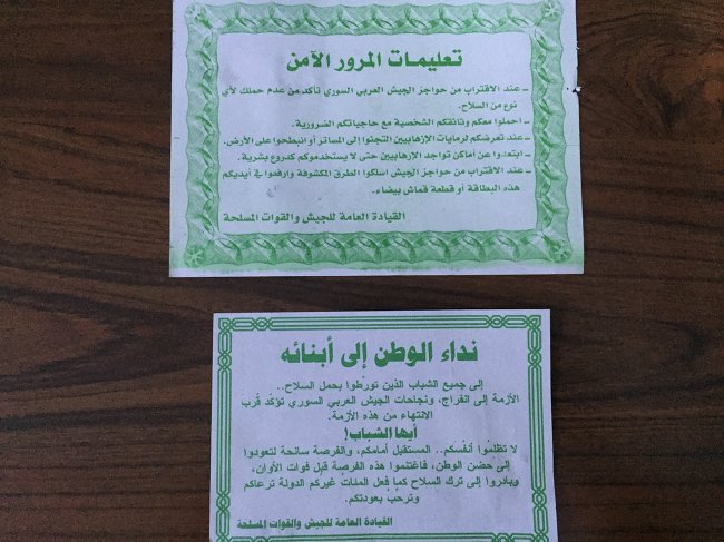 «Не делайте себе хуже», — приводит отрывок текста листовок издание Daily Mail. По сообщению издания, листовки были сброшены над позициями боевиков под Эр-Растаном и Телль-Биссой, после ударов ВКС России.