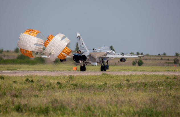 Бомбардировщик Су-24 называют танком с крыльями — он весит около 30 тонн. Его тормозным парашютом можно было бы с легкостью укрыть несколько легковых машин, а само устройство после остановки самолета опускается на полосу и отстреливается, а затем парашют доставляют на место сборки.