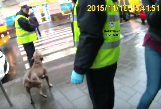 Львовские полицейские напали на питбуля и его больного хозяина (ВИДЕО)