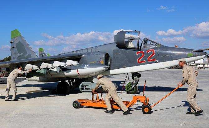 Напомним, что в сирийской операции задействовано 69 самолетов. Основу авиагруппы на базе Хмеймим составляют штурмовики Су-25СМ (12 машин), фронтовые бомбардировщики Су-24М и Су-34 (11 и 4 соответственно), истребители Су-30СМ (4 единицы), ударные вертолеты Ми-24 (12 единиц) и многоцелевые Ми-8 (4 машины). В дополнение к ней добавлена авиагруппа на территории РФ: четыре истребителя Су-27СМ, 5 стратегических ракетоносцев Ту-160, 6 Ту-95МС, 8 Су-34 и 14 Ту-22М3.
