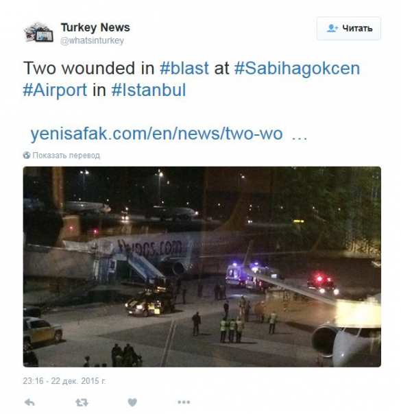 Взрыв в аэропорту Сабиха Гёкчен в Стамбуле, где пострадали два человека, мог быть терактом. Об этом сообщают турецкие СМИ.