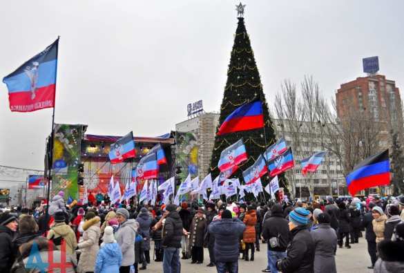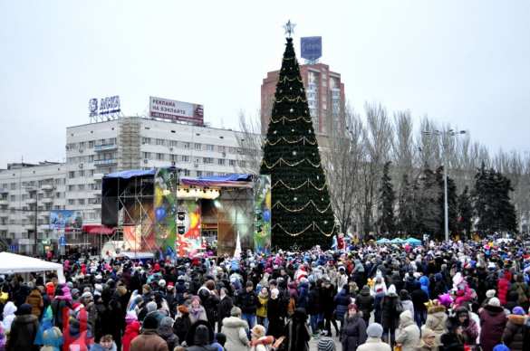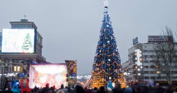 Открытие главной новогодней елки Донецкой Народной Республики собрало на центральной площади столицы более 10 тысяч жителей, в том числе множество детей. Церемонию зажжения огней совместили с запуском исторических часов на здании Главпочтамта столицы.