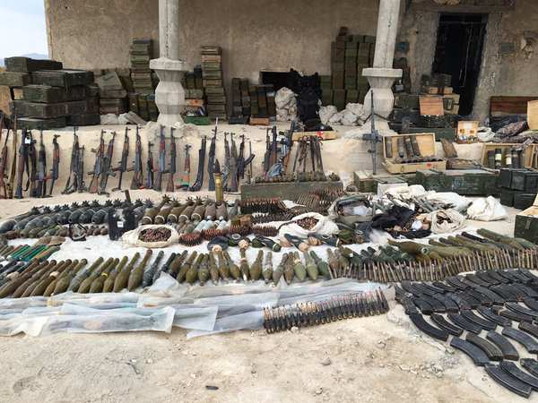 На опубликованных фотографиях можно разглядеть автоматы Калашникова, американские винтовки М-16, пулеметы, советские гранатометы РПГ-7 и даже винтовки Мосина (трёхлинейка образца 1891 года). А также большое количество боеприпасов, гранат, минометных мин и взрывчатых веществ.