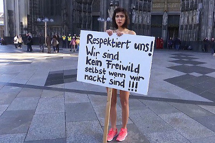 Как пишет британская газета The Telegraph, обнаженная женщина вышла на главную площадь города, где в новогоднюю ночь десятки женщин подверглись сексуальным домогательствам.