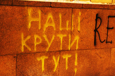 Отсылки к сражению под Крутами встречались и во время беспорядков на Майдане: от Крещатика до печально известной улицы Грушевского встречались граффити «Наши Круты тут!»