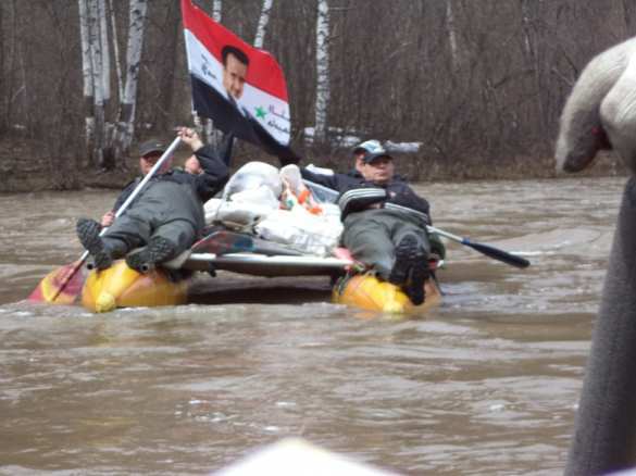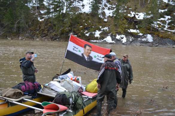 Сплав экстремалы проводили на катамаранах, на один из них они водрузили флаг Сирии с изображенным на нем портретом Башара Асада.